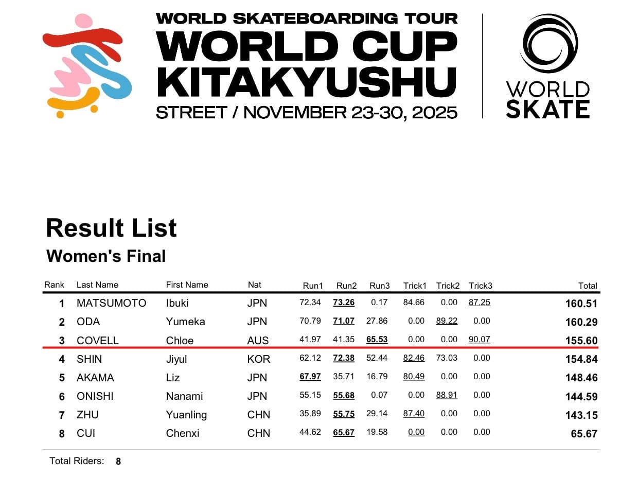 And that's what was on display during the "street" contest finals at World Skate's World Cup stop in Kitakyushu, Japan, last weekend.