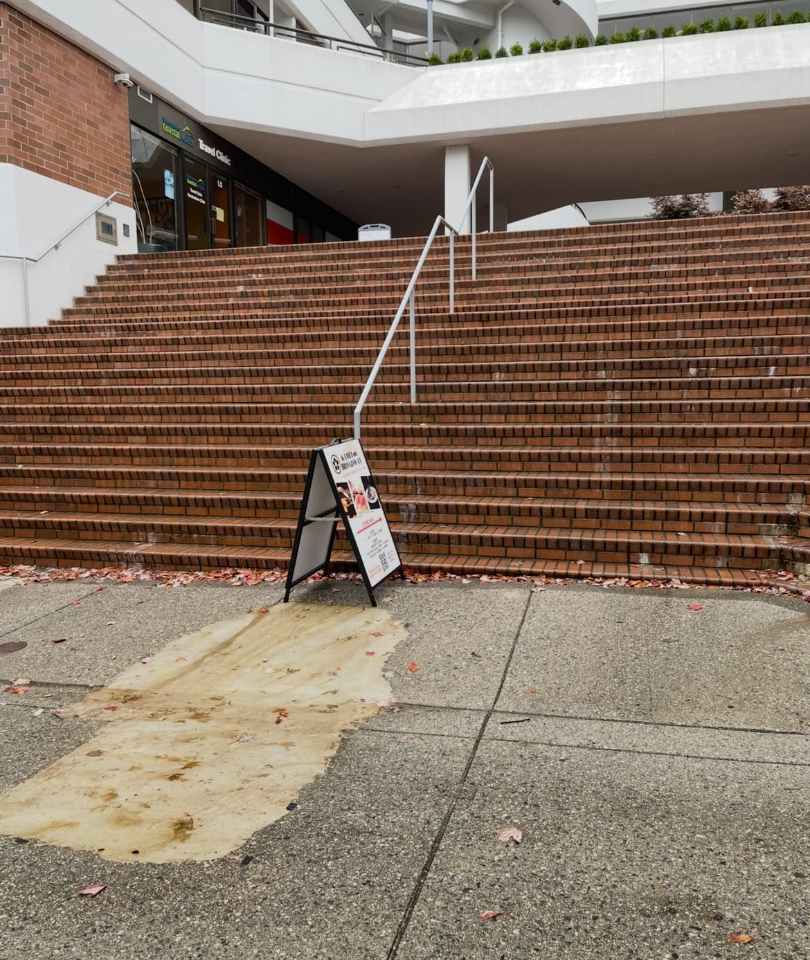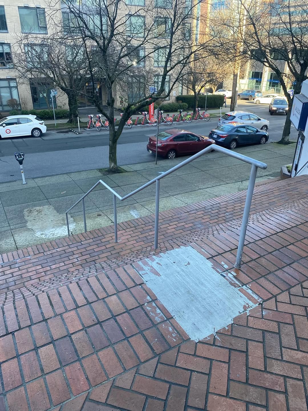 Outside of his office, as I hobbled toward home, I came across a patch of Bondo at the run-up and landing of a massive brick double set with an accompanying kinked handrail. That's funny, I thought to myself, that anyone would even prep a spot that clearly can't be skated. I took a photo to share in the group chat.
