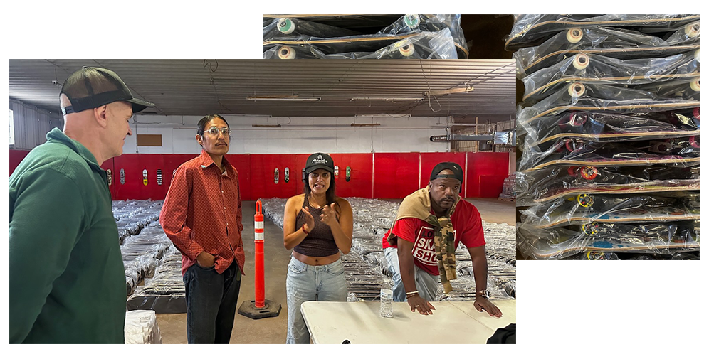 He also told me that more citizens of these nations live off the rez than live on. That could be due to resources on some reservations being so severely limited. Many Diné live without electricity and plumbing. There is only spotty wireless internet. And there is exactly one skate park to be found on the 24,000 square miles of the Navajo Nation, the Two Grey Hills Skatepark, which was conceived of and made real thanks in large part to Amy Denet Deal.