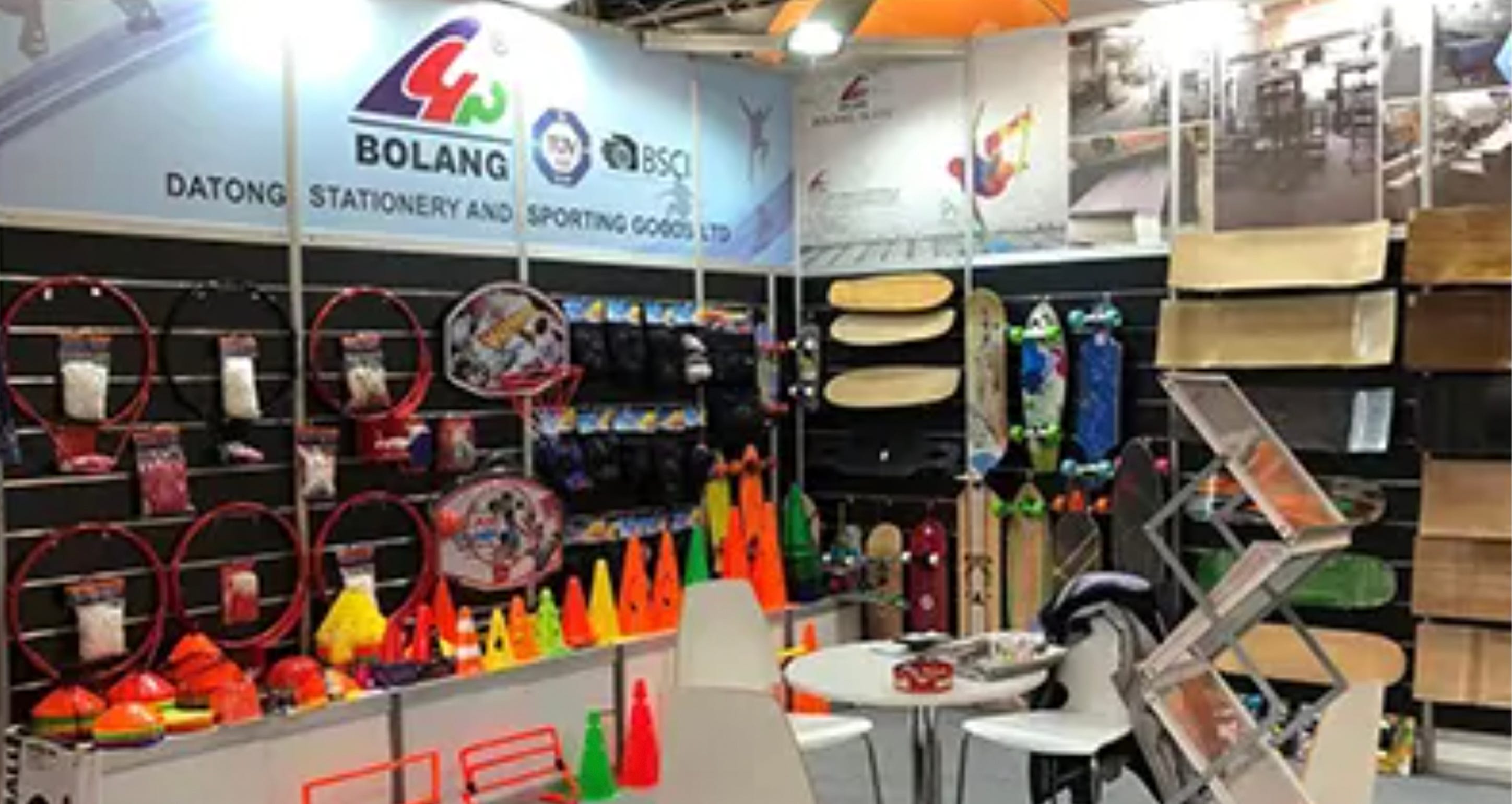 While in a bit of a rut, I decided to take another look at the Alibaba supplier page of Bolang’s parent company, Foshan Nanhai Jingqian Sporting Goods Co., Ltd. Their business profile says they’re a manufacturing facility based on the mainland in Guangdong, China, which would presumably rule them out as the Hong Kong-based “distributor” Failla had mentioned. However, after poking around a little further on the site, I found an undated promotional photo from what looks to be a trade show Bolang participated in.