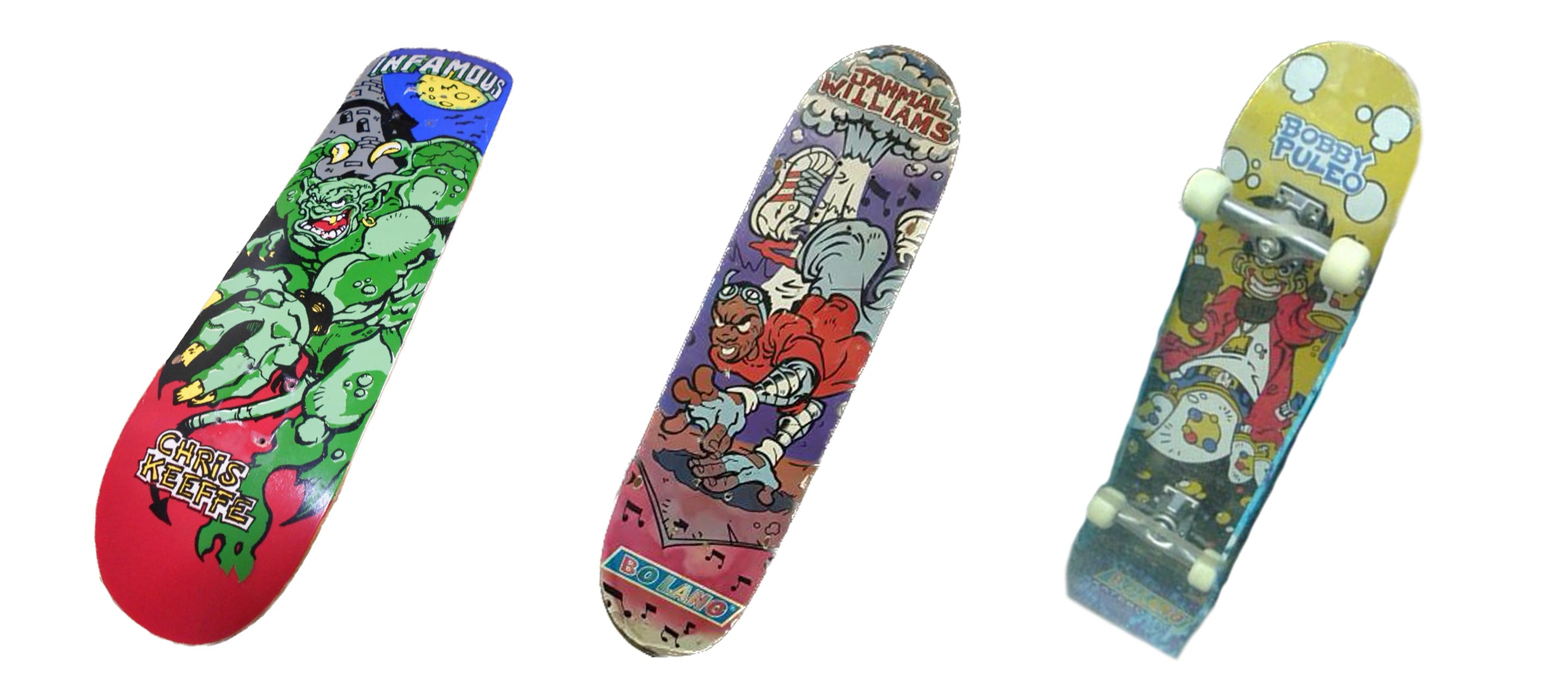 As Puleo’s theories go, when his former sponsor Infamous Skateboards shuttered, it either sold off its backstock or image rights to Bolang, leading to decades worth of illegitimate “Bobby Puleo” completes dotting the aisles of toy stores and collecting dust in an untold number of parents’ crawl spaces. On its face, both theories seem feasible. When a company goes under, there’s usually some form of asset liquidation to try and recoup losses or pay off debts. But figuring out how to prove it was another thing. With Bolang unwilling to talk about the origins of their graphics, the only link left to explore was Infamous itself.