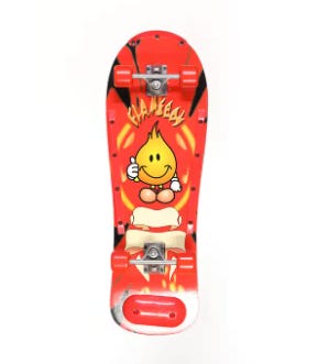Among them, there are clear Street Fighter and Dragon Ball Z ripoffs (that could’ve used a bit more work if we’re being honest), a series of likely-lifted designs featuring several spokescharacters from the once-popular ‘90s brand No Rules, and in a particularly bold move, there are a number of late-‘90s World Industries and Blind Skateboards graphics that look (mostly) accurate to the original Flameboys, Wet Willys, and Reapers I pined over in my youth. I reached out to World Industries on the off-chance that they’d had a licensing arrangement with Bolang and was told that they would be “[notifying] our legal department as these are not authentic WI boards.”