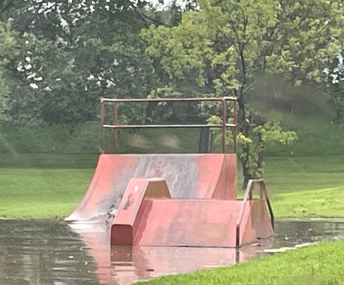 The hours spent and friendships forged in places like this are at once universal and hard to fully comprehend. This crude approximation of a skatepark still managed to excel at its job as an extracurricular host, refuge, and proving ground. A hyper-local culture developed here. Slang was adopted, evolved, and forgotten. Kids found and lost themselves while in search of who they wanted to be. When I think about rolling into the big metal bank to hit the big metal quarterpipe, I can feel my bare flesh sticking to the ramps in peak August heat and hear the crash of metal trucks on metal edges carrying over the park. Is it normal for that to make your eyes well?