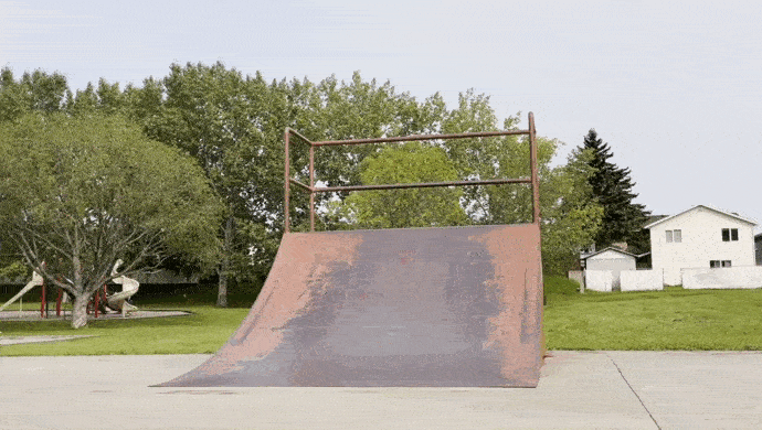 The Lac La Biche skatepark — my hometown park — is emblematic of the trend. Its original iteration, installed some 25 years ago, held an obstacle one could aptly describe as Modern Tech Deck. A prohibitively steep and slender bank led to a tabletop that reached head height and was flanked by two rounded ledges that went across and down. Its far side was a three-flat-three stair set that was impossible to gather the required speed to attempt.