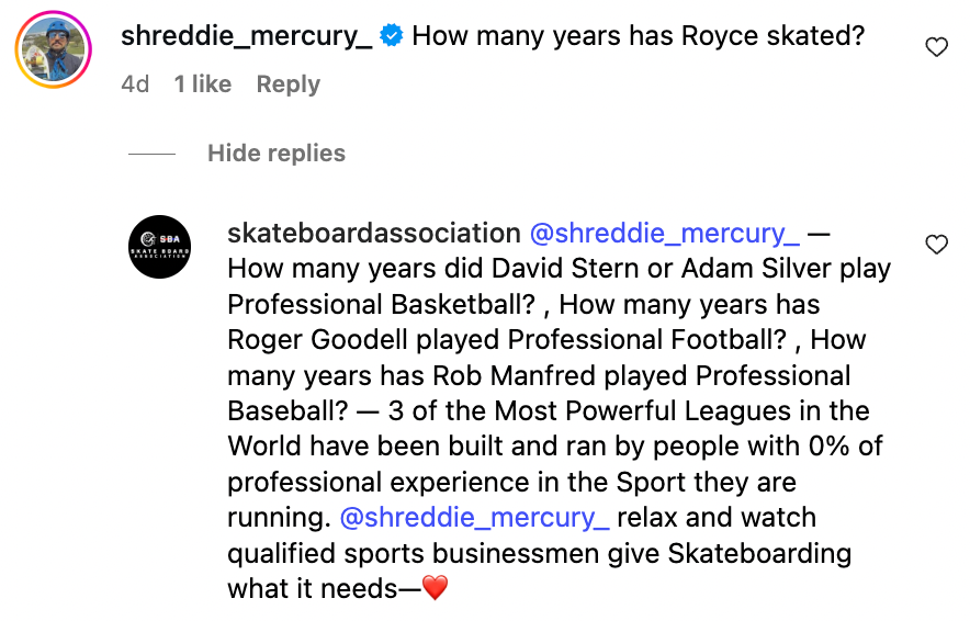 It's going to be hard for any organization to be forward-looking when they don't have a grasp on the present. "Skateboarding has always been a culture of creativity and resilience, and the SBA represents a new era where that culture is elevated onto a global stage." Payton II is quoted as saying in the SBA press release.
