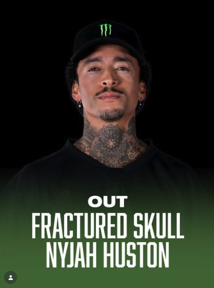 On the day of the event, however, Huston shared on his Instagram Story that he wouldn't be skating after all because of a bruised knee — not the cracks spiderwebbing across the bony conch holding his brain in place. There's clearly no athletic commission or governing body overseeing these events, but if this is how they're going to govern themselves, maybe there should be!