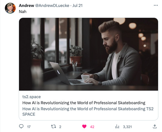 “How AI is Revolutionizing the World of Professional Skateboarding” is definitely a prompt you plug into your large language model if you’ve run out of ideas. But, out of curiosity, how is AI revolutionizing the world of professional skateboarding?