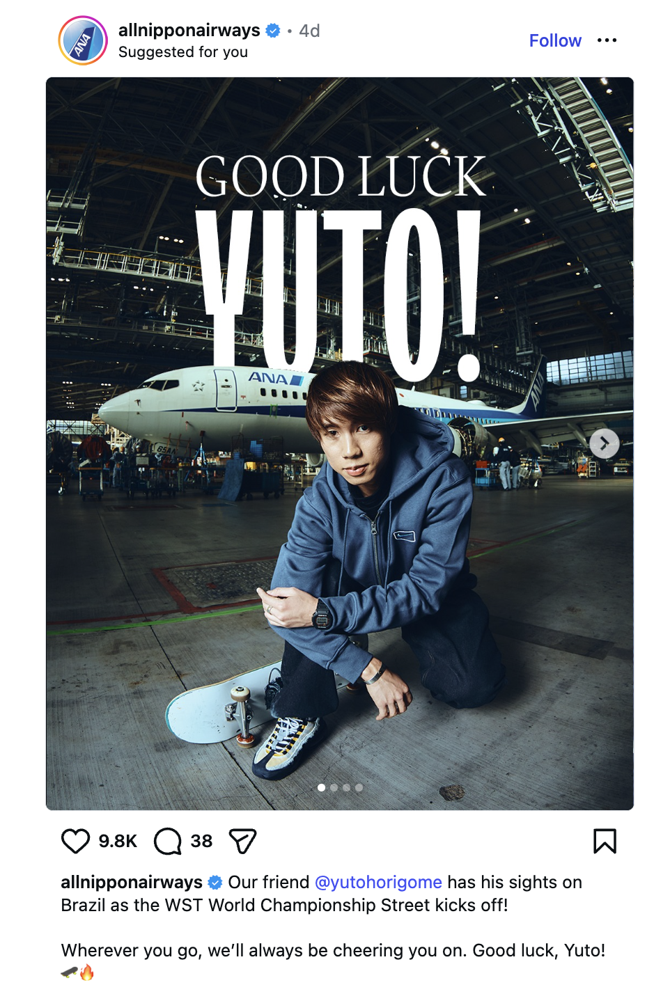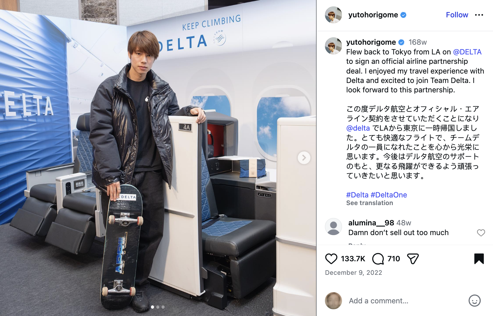 Want to know what else I saw while on the couch? Two-time Olympic gold-medalist Yuto Horigome no longer rides for Delta Airlines and has since jumped Airbus to All Nippon Airways.